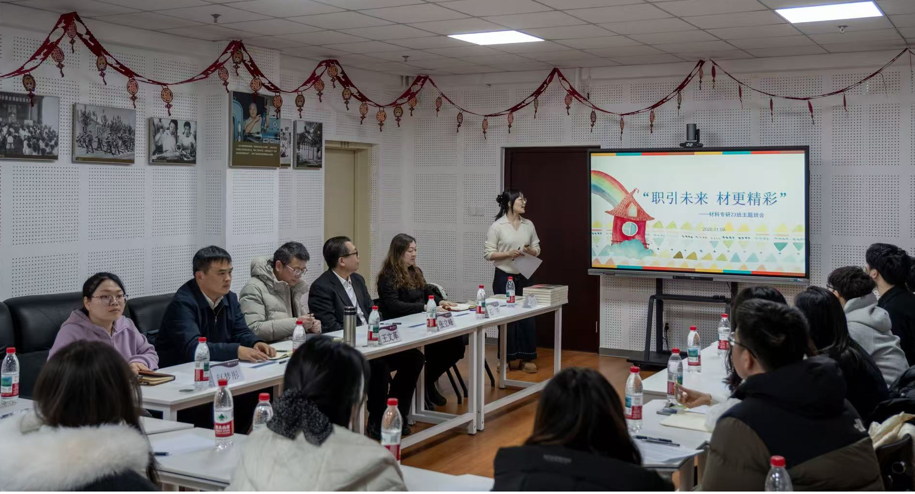 为精准助力毕业生把握就业关键期,科学规划职业生涯,1月9日下午,机材学院材料专研23班“‘职’引未来‘材’更精彩”就业指导与生涯规划主题班会在博才楼202顺利举行。党委副书记、校长张立峰深入基层联系班级,倾听学子心声,回应成长关切,与学院领导、辅导员及全体同学共同座谈交流。班会上,辅导员张月鑫首先介绍了材料专研23班的整体就业进展与趋势,针对同学们“选择太多不知如何聚焦”“能力与心仪岗位有差距”“信息繁...