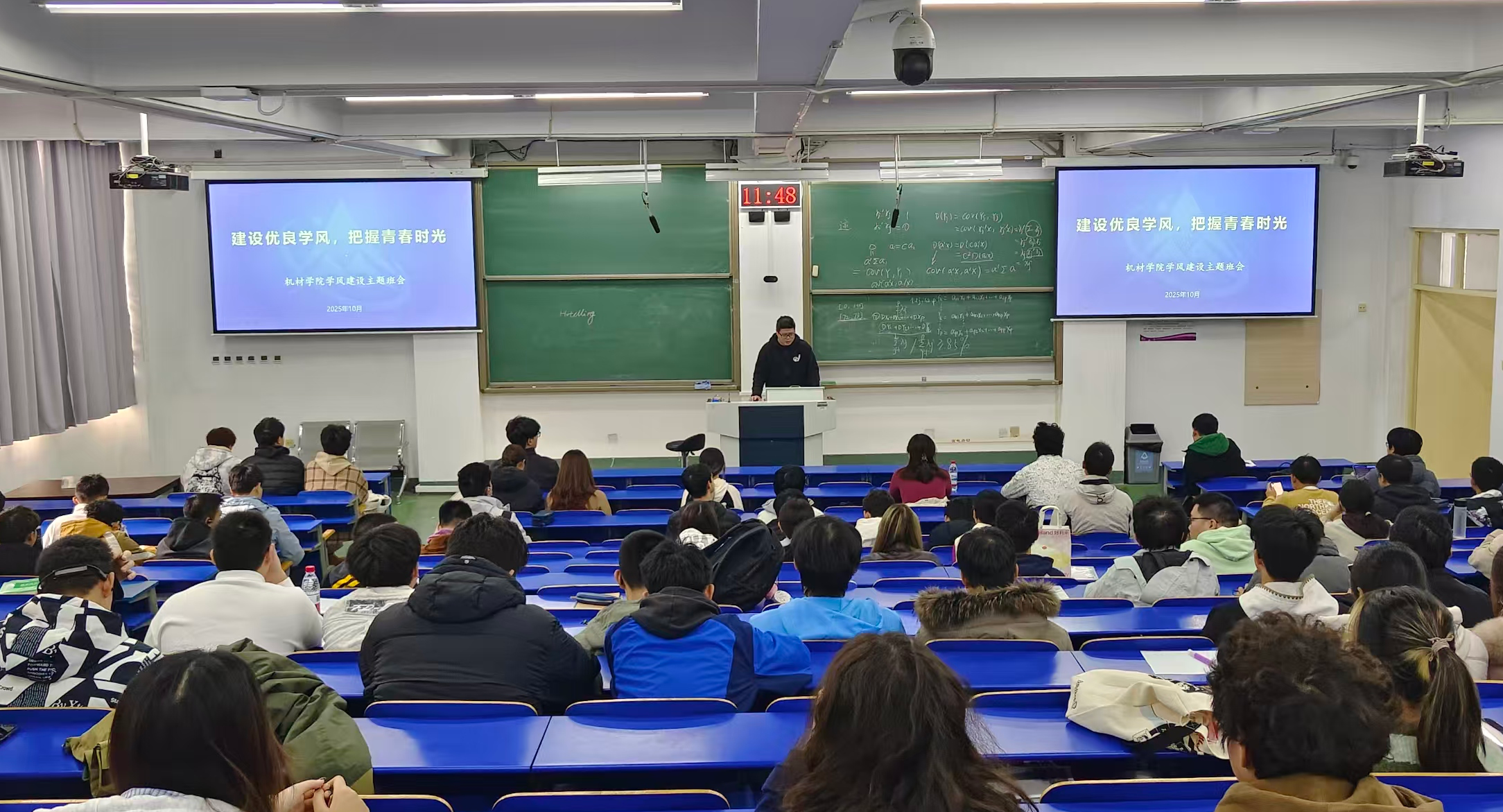 为进一步加强学风建设,发挥学生干部在学风建设中的引领和示范作用,提升学生骨干团队协作与管理能力,机材学院于10月30日在浩学楼组织了2025级学风建设主题班会暨班委培训会,2025级全体班委参会。辅导员张景斌结合学校新修订的《本科学生学籍管理规定》,对学业预警制度、推免绩点分计算办法以及历年奖学金评定标准进行了详细解读;对近期课堂检查、宿舍走访中发现的典型问题进行了原因分析,并提出了改进要求;鼓励班级骨干...