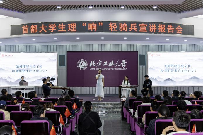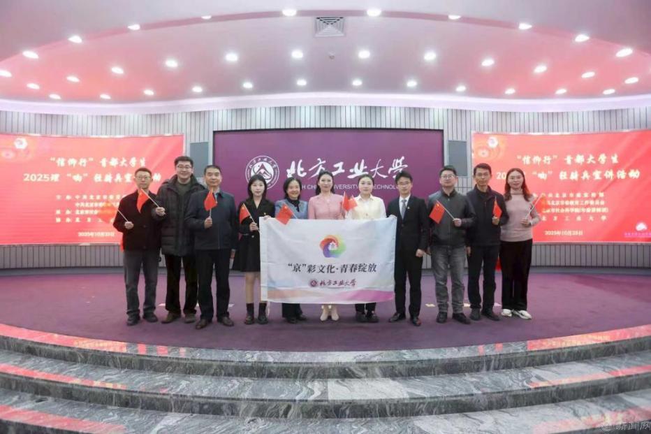 10月25日下午,“信仰行”首都大学生理“响”轻骑兵第四场宣讲报告会在我校举行。来自北方工业大学、北京理工大学、中国音乐学院的青年学子,以“理论+故事+文艺”的创新形式,围绕“新质生产力”“科技强国”“习近平文化思想”三大主题展开宣讲,为现场300余名高校师生代表呈现了一堂兼具思想深度与青春活力的“大思政课”。北京市社会科学院党委书记谢辉,党组成员、副院长、市委讲师团团长肖峻峰,我校党委副书记姜孔桥、纪委书记段辉建出席宣讲活动。