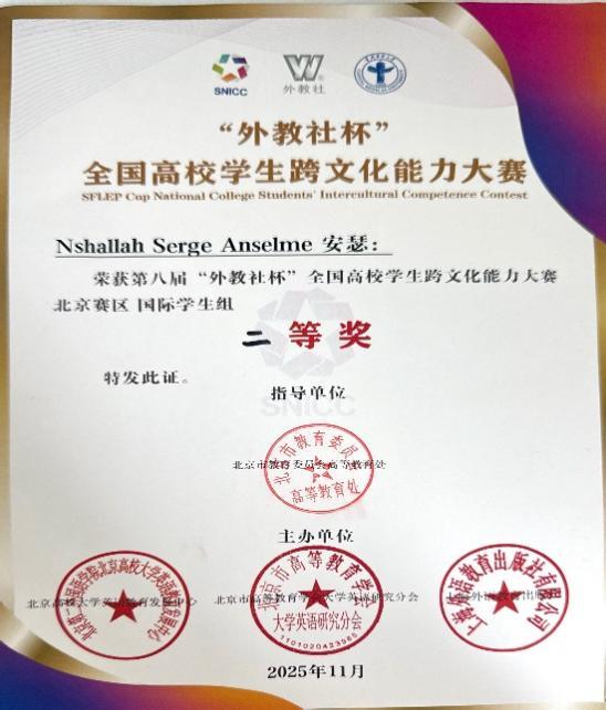 此次获奖既是对参赛师生辛勤付出的肯定,更是我校跨文化教育成效的集中体现。团队充分发挥成员互补优势,将跨文化交际理论与真实生活场景深度结合,这种 “以赛促学、以赛促教” 的模式有效提升了留学生的文化适应力与全球胜任力。学校将继续深化国际化人才培养模式改革,为培养更多知华、友华的跨文化交流使者,推动中外文明互鉴贡献力量。