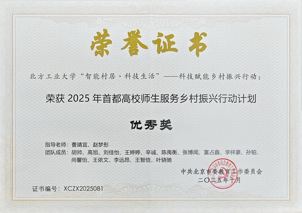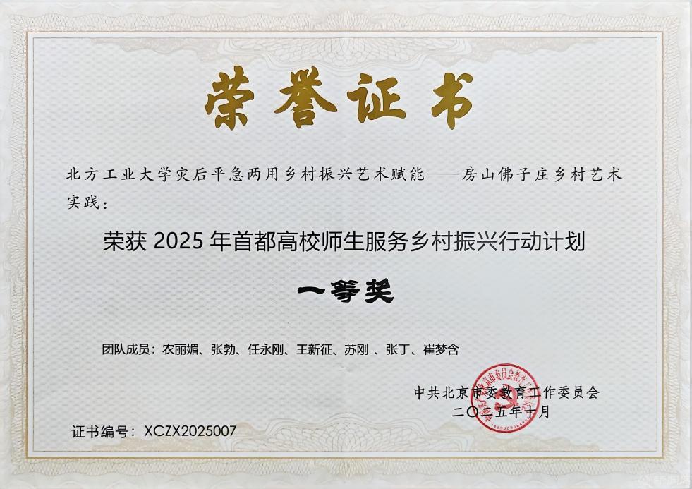 近日,2025年首都高校师生服务乡村振兴行动计划优秀成果评审结果公布,我校申报的三个项目全部入选,教师团队项目“灾后平急两用乡村振兴艺术赋能——房山佛子庄乡村艺术实践”获评一等奖,学生团队项目“低碳技术赋能绿色乡村建设的实践探索——未来乡村绿能计划”和“‘智能村居·科技生活’——科技赋能乡村振兴行动”分别获评三等奖和优秀奖。