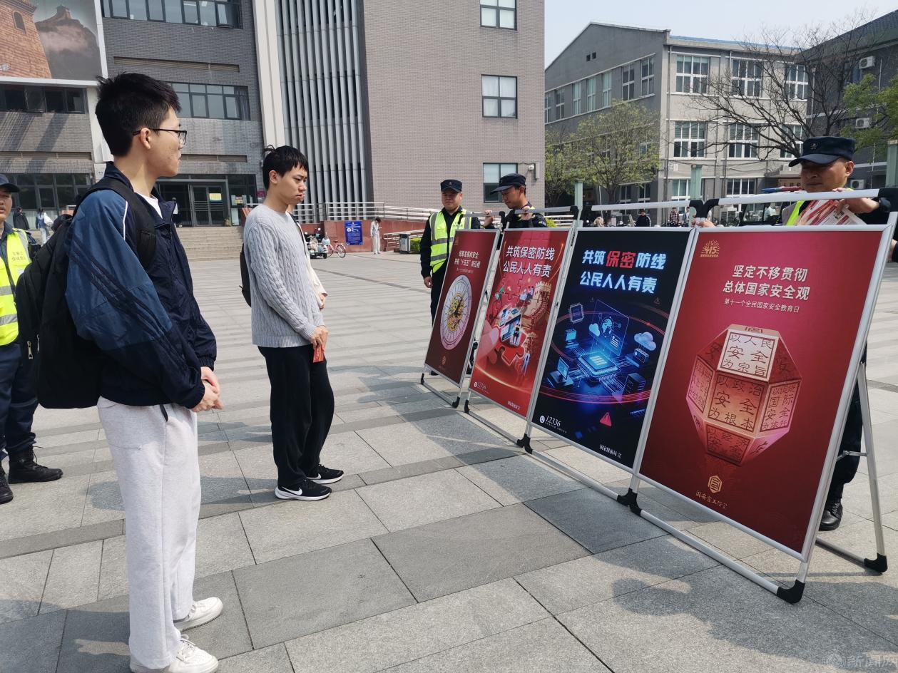 石景山公安分局民警进行了国家安全宣讲。活动现场设置了包含国家安全、保密安全、消防安全、交通安全、防范电信网络诈骗和反邪教等要素的海报展区,吸引众多师生驻足观看。