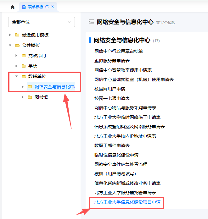 图2 《北方工业大学信息化建设项目申请》表单