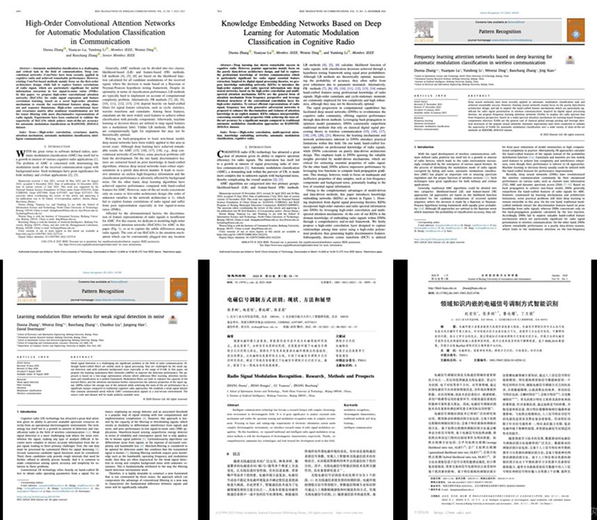 张多纳的研究方向主要包括电磁智能识别、机器学习、数字信号处理等前沿交叉领域。入校以来,他始终坚持面向学科前沿和实际需求,持续探索人工智能方法与传统信号处理理论的深度融合,围绕复杂电磁环境下信号检测、调制识别、射频指纹识别等关键问题开展系统研究,逐步形成了较为鲜明的学术特色和稳定的发展方向。