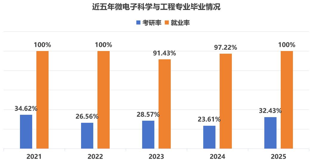 访企拓岗,促高质量就业。构建“全员联动、岗位拓展、校企对接、能力赋能”四维促就业体系,主动出击,拓宽就业渠道,组织开展“芯薪相映——就业星期五”系列活动10余期,走访企业26家,拓展岗位157个,2025届毕业生的就业落实率达到100%,就业率均达100%,北京生源落实率100%。毕业生主要进入长鑫存储、华峰测控等头部企业。考研率32.43%,位居全校第一。