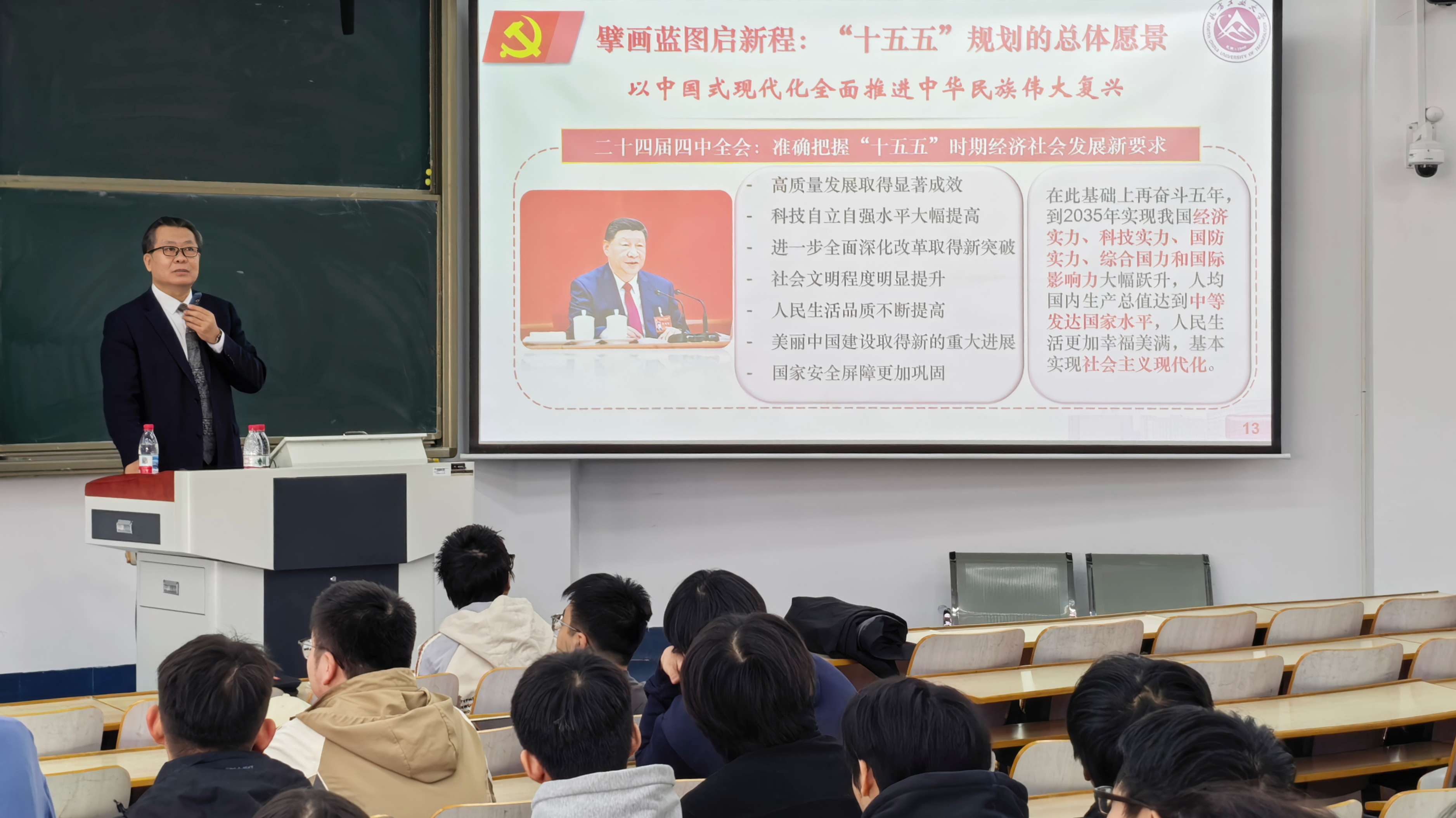 11月13日上午,党委副书记、校长张立峰走进习近平新时代中国特色社会主义思想概论课堂,围绕“社会主义现代化建设的教育、科技、人才战略”专题,为学生讲授了一堂兼具理论深度与实践温度的思政课。张立峰首先介绍了党的二十届四中全会召开情况,解读了“十四五”时期我国发展取得的重大成就及《中共中央关于制定国民经济和社会发展第十五个五年规划的建议》所作出的战略谋划和顶层设计。他结合个人成长经历和工作实践,以“教...