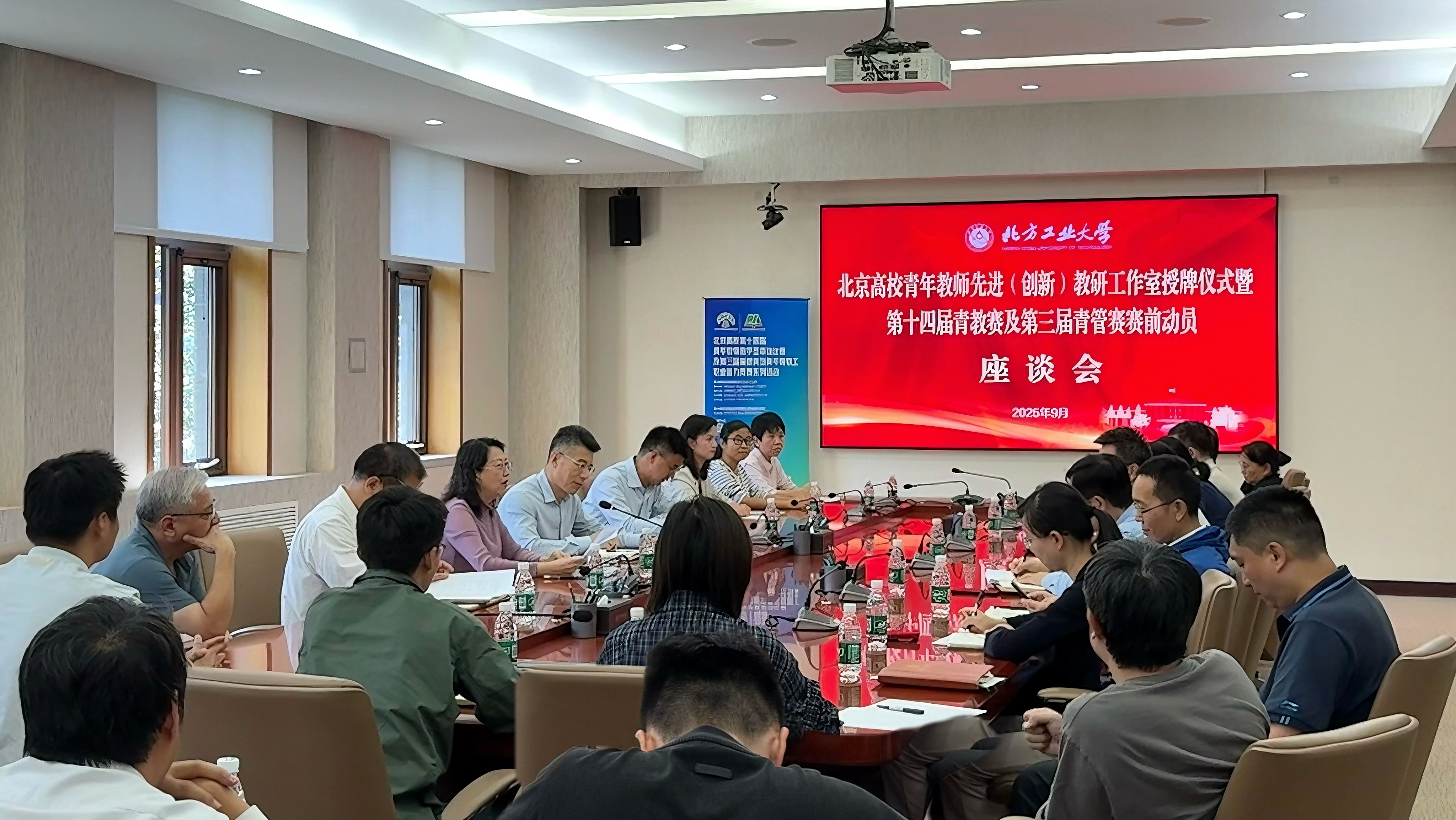 9月18日下午,我校举行北京高校青年教师先进(创新)教研工作室授牌仪式暨第十四届青教赛及第三届青管赛赛前动员座谈会。学校党委副书记、工会主席姜孔桥出席,各学院党委书记、教学副院长、获奖教师代表、本届青教赛、青管赛指导教师、参赛选手等30余人参加,会议由工会常务副主席黄睿主持。姜孔桥为我校荣获北京高校青年教师先进(创新)教研工作室授牌。该奖项是由北京市委教育工委、北京市教委、北京市教育工会联名授予“北...