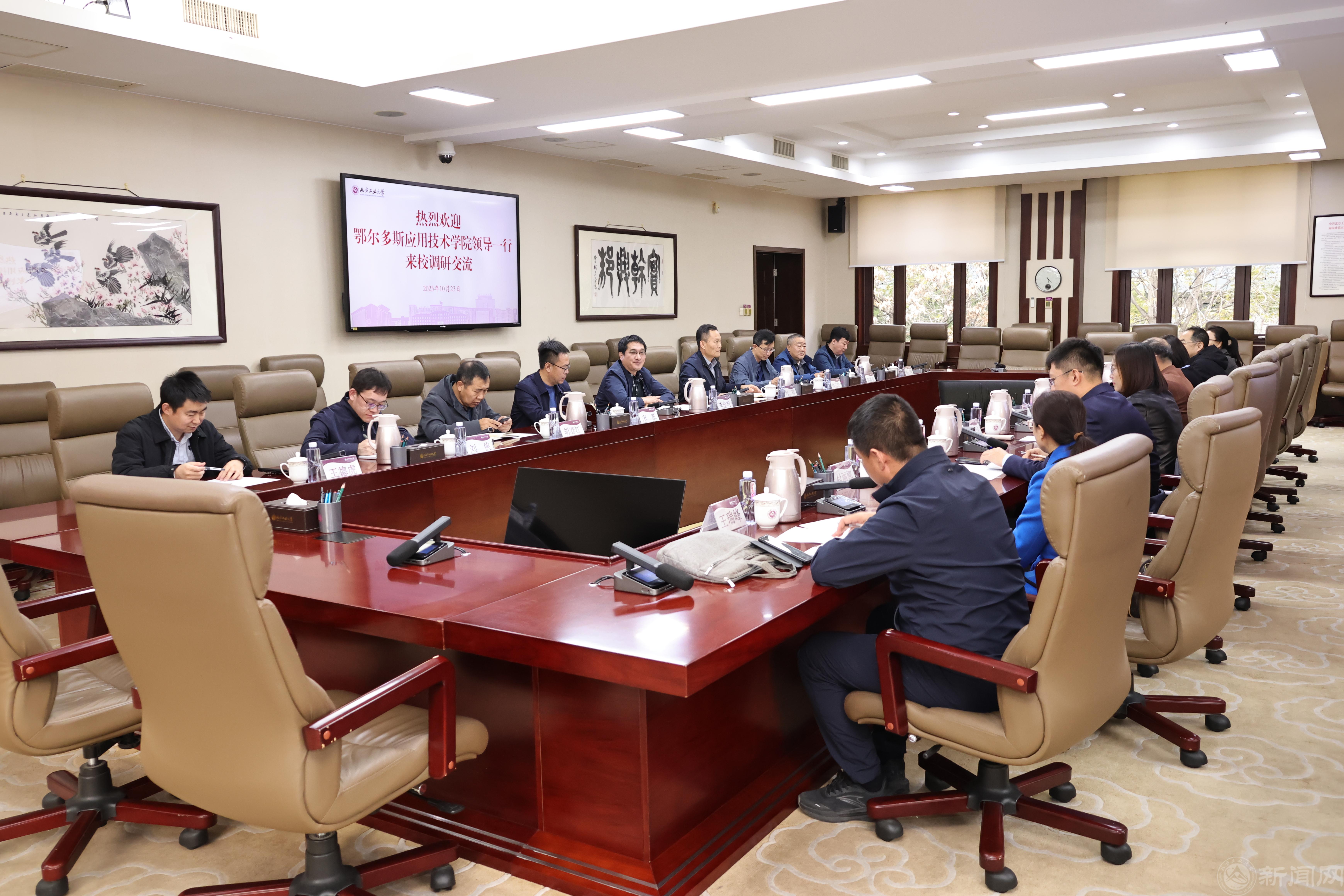 鄂尔多斯应用技术学院党政办公室、组织部、科学技术处、资产管理处、教学质量监控中心、管理学院,以及我校学校办公室、组织部、教务处、科学技术研究院(科技成果转化中心)、资产与实验室管理处、校友工作办公室、经济管理学院等负责人参加了交流。