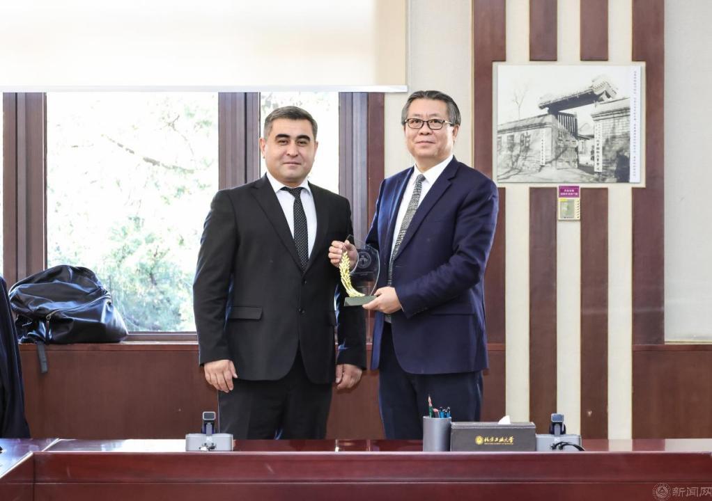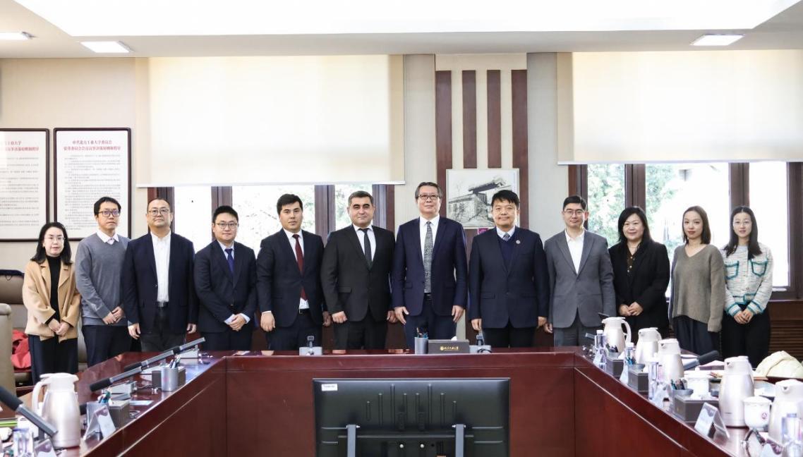 12月8日,安集延国立技术大学校长图尔迪亚利耶夫一行访问我校,我校党委副书记、校长张立峰在敦品楼302室与来访嘉宾进行座谈,党委常委、副校长陈群主持座谈。