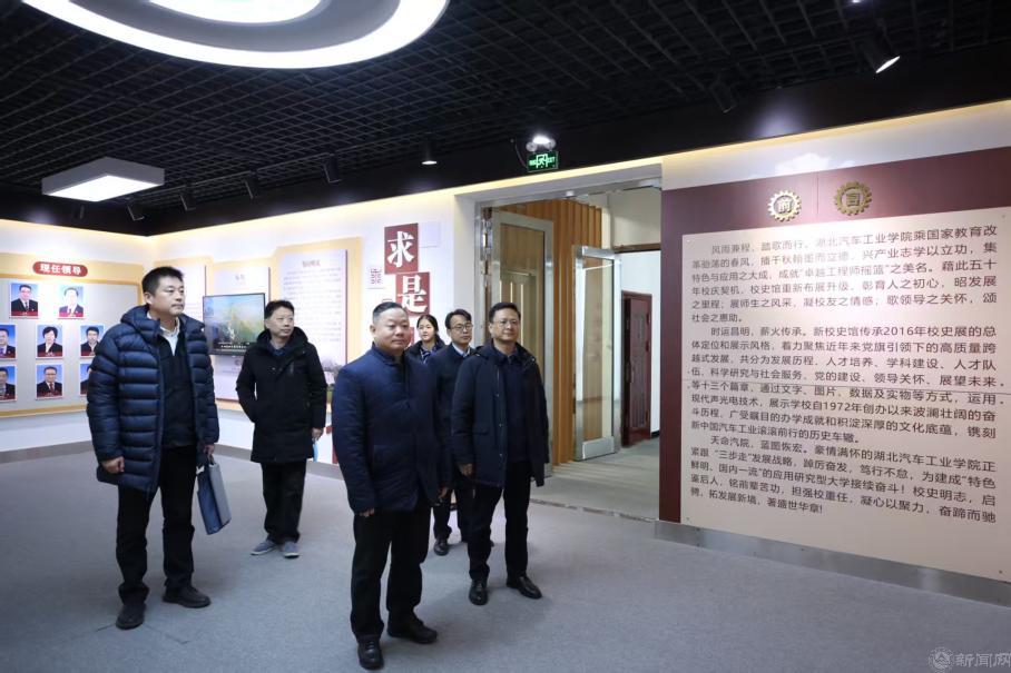 会前,卢晓斌一行参观了湖北汽车工业学院校史馆、科创展示交流中心、汽车动力传动与电子控制湖北省重点实验室等。