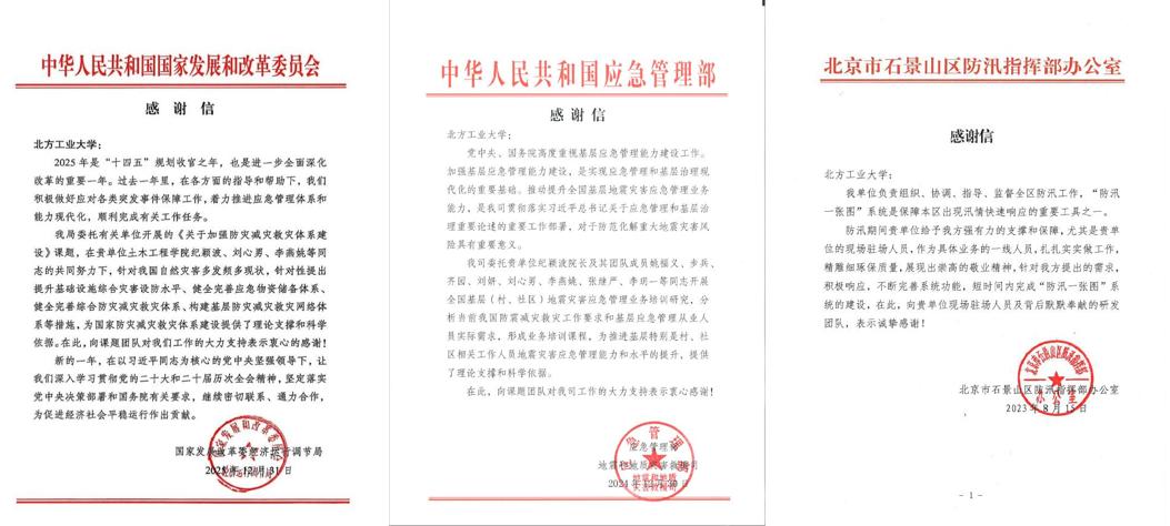 主动作为服务国家防灾减灾救灾体系建设重大需求。“23·7”特大暴雨灾害期间,学院派出技术团队赴石景山区应急局完成“防汛一张图”系统建设,灾后派出技术团队赴门头沟区支撑灾损评估和灾后重建。依托学校新兴风险院,联合北京师范大学等合作伙伴承担发改委、应急管理部、北京市城管委等政府部门委托的行业领域安全风险评估及防灾减灾救灾体系建设等研究任务,为国家和北京防灾减灾救灾体系建设做出了理论支撑贡献。