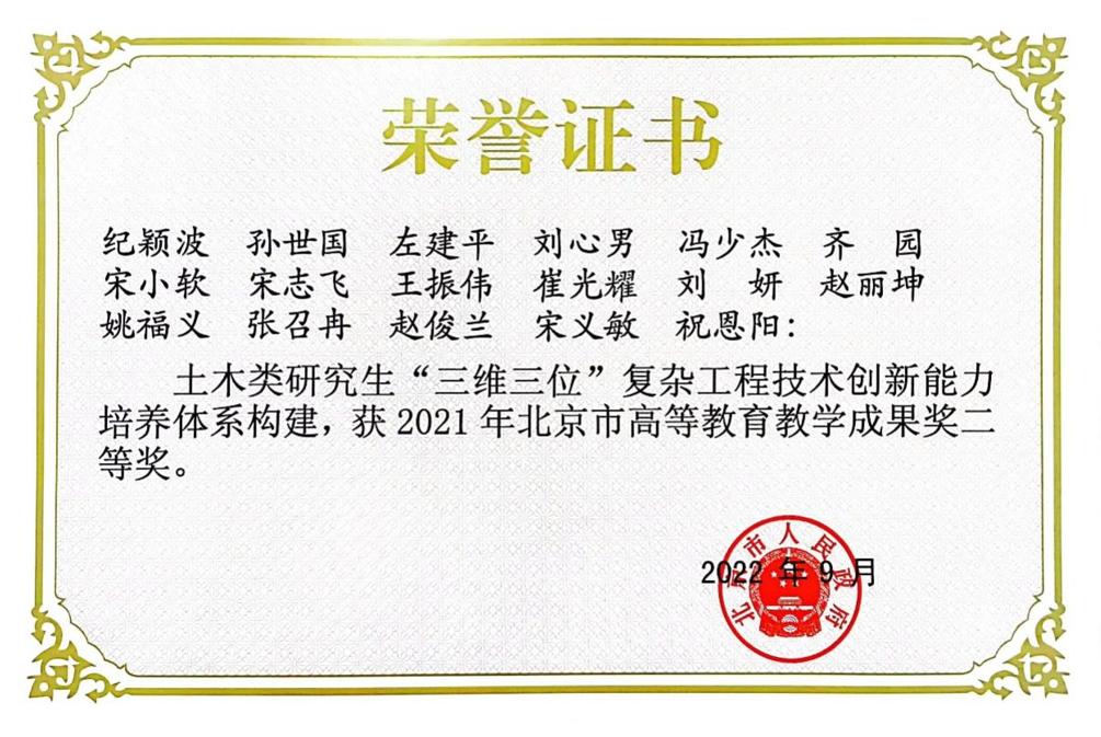 人才培养成效显著。学院构建了研究生“三维三位”复杂工程技术创新能力培养体系,通过创新课程内容、重构实践环节和以高水平科研项目作为研究支撑三个维度开展教学改革,达成对家国情怀、工程能力和技术创新能力三个方面的培养目标,人才培养成果获北京市研究生教学成果奖二等奖。