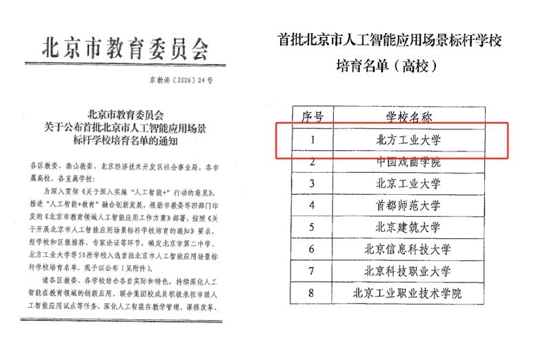 近日,北京市教育委员会正式公布了首批北京市人工智能应用场景标杆学校培育名单。我校凭借人工智能与高等教育深度融合方面的系统性实践成功入选。