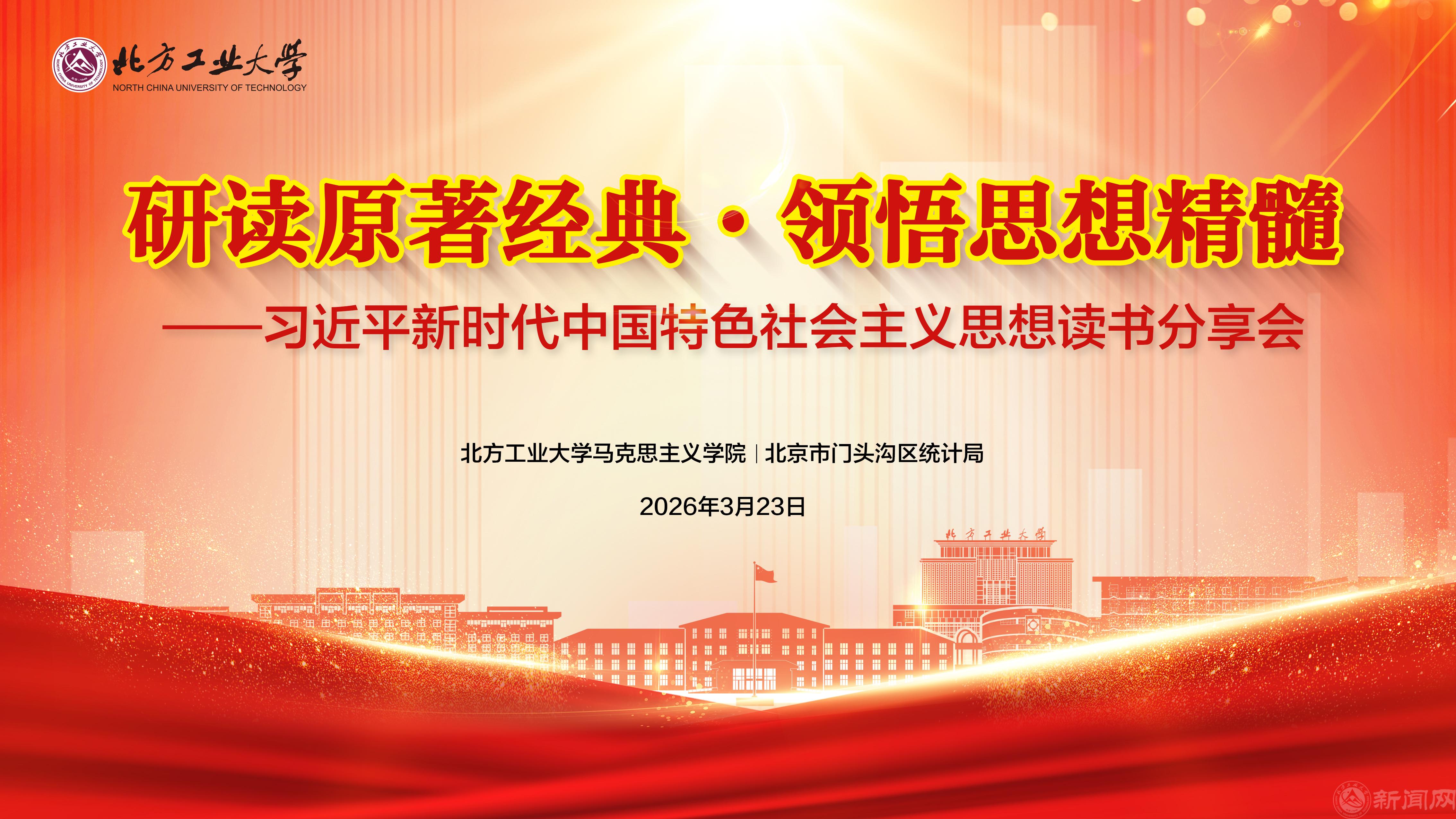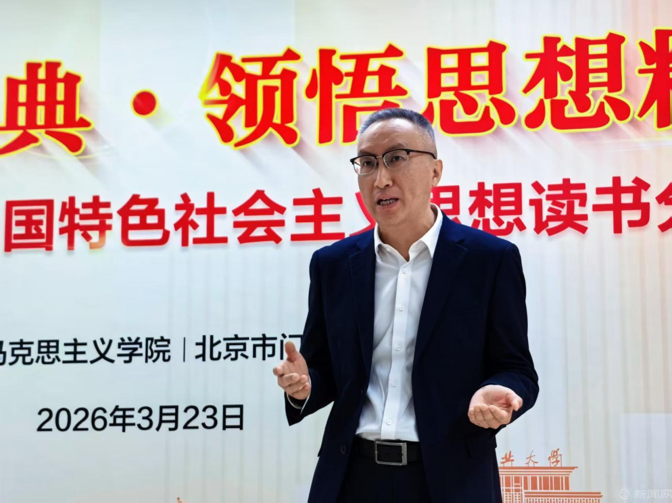 为进一步提升思政课教师的理论素养与教学水平,营造读原著、学原文、悟原理的浓厚氛围,推动我校思政课建设迈上新台阶,3月23日上午,马克思主义学院与门头沟区统计局联合举办“研读原著经典 领悟思想精髓”习近平新时代中国特色社会主义思想读书分享会。学校党委副书记姜孔桥,门头沟统计局党组书记、局长谢晓东出席活动。分享会由马克思主义学院党委书记王引主持。
