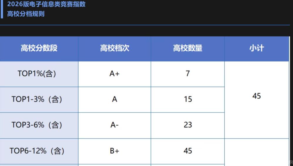 近日,高校教师教学发展研究国家级虚拟教研室、浙大城市学院高等教育数智评价研究中心等单位联合发布2026版普通高校大学生竞赛指数,北方工业大学人工智能与计算机学院表现突出,在电子信息类竞赛指数中获评B+等级,位居全国TOP6-12%,取得北京市属高校第一名的好成绩。