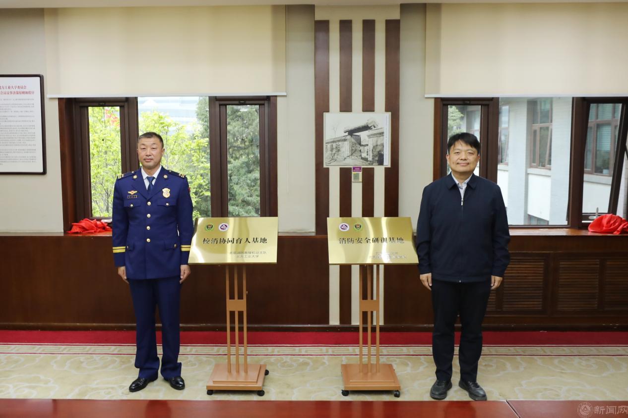 双方签署了共建协议,陈群、包文东为“校消协同育人基地”“消防安全研训基地”揭牌。