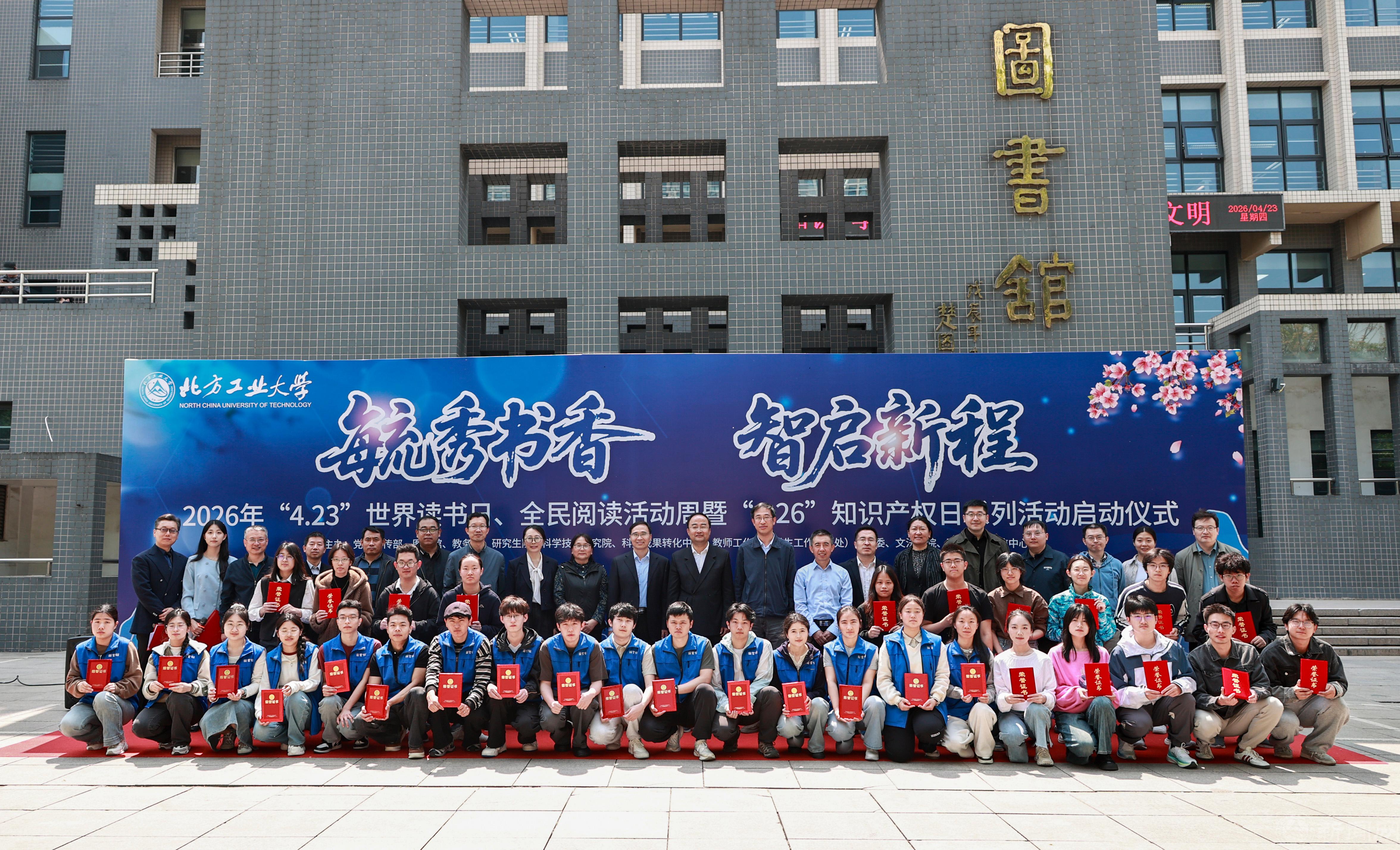 4月23日,2026毓秀悦读季——“4·23”世界读书日、首届全民阅读活动周暨“4·26”世界知识产权日系列活动系列活动在钟秀广场启动。党委常委、副校长王力出席,学校相关部门负责人、教师代表及学生代表500余人参加了活动。