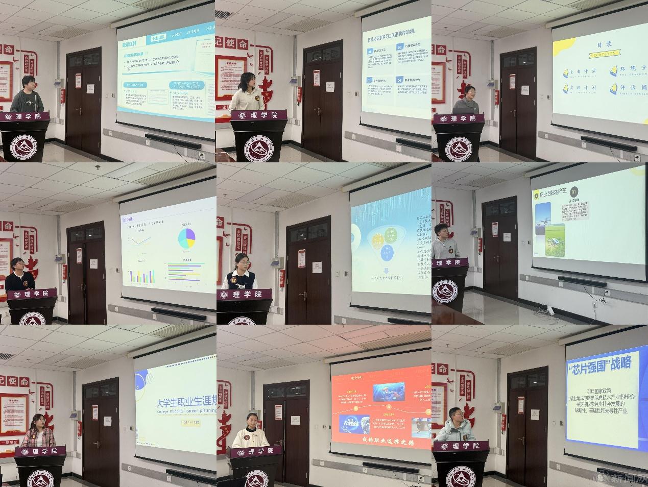 比赛中,选手们围绕自我认知、职业环境分析、目标岗位匹配、实施路径与评估调整等方面,进行了系统而精彩的展示。他们结合专业特色、行业趋势与个人实践,展现了理学院学子清晰的职业思考与积极的行动力。评委们从职业目标设定的科学性、规划内容的可行性、展示表达的感染力等维度进行综合评判,并针对每位选手的特点给予了中肯建议与优化方向。经过激烈角逐,最终推荐蒋林红等4名同学代表理学院参加校级选拔赛。