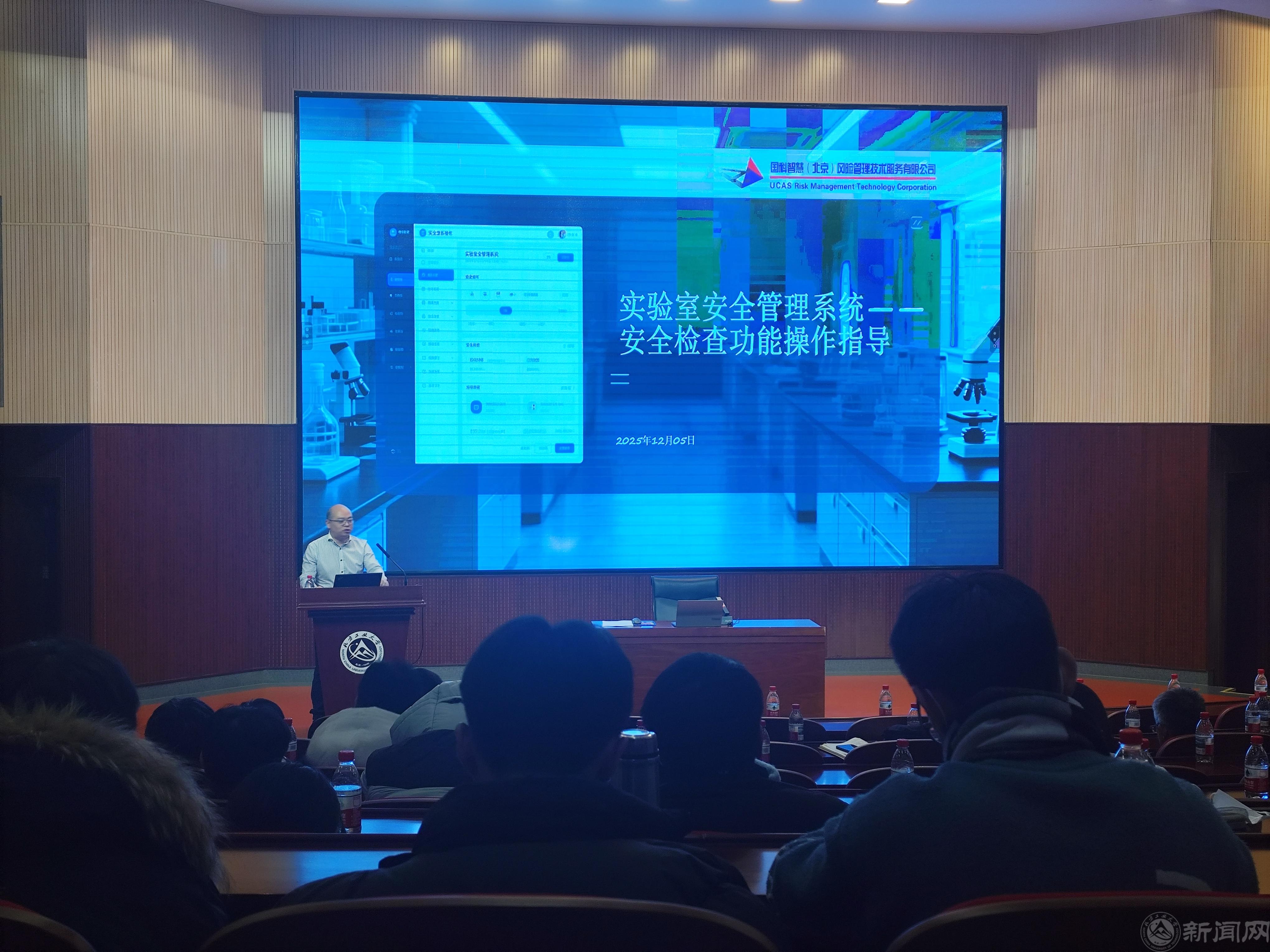 随后,北京国科智慧信息有限公司尹庆平就学校实验室安全管理系统的使用作专题培训。培训内容紧扣系统功能模块,涵盖安全巡检、隐患上报、整改跟踪等多个方面,旨在通过信息化、智能化手段提升安全管理效率和规范化水平,为实验室安全运行提供技术支撑。