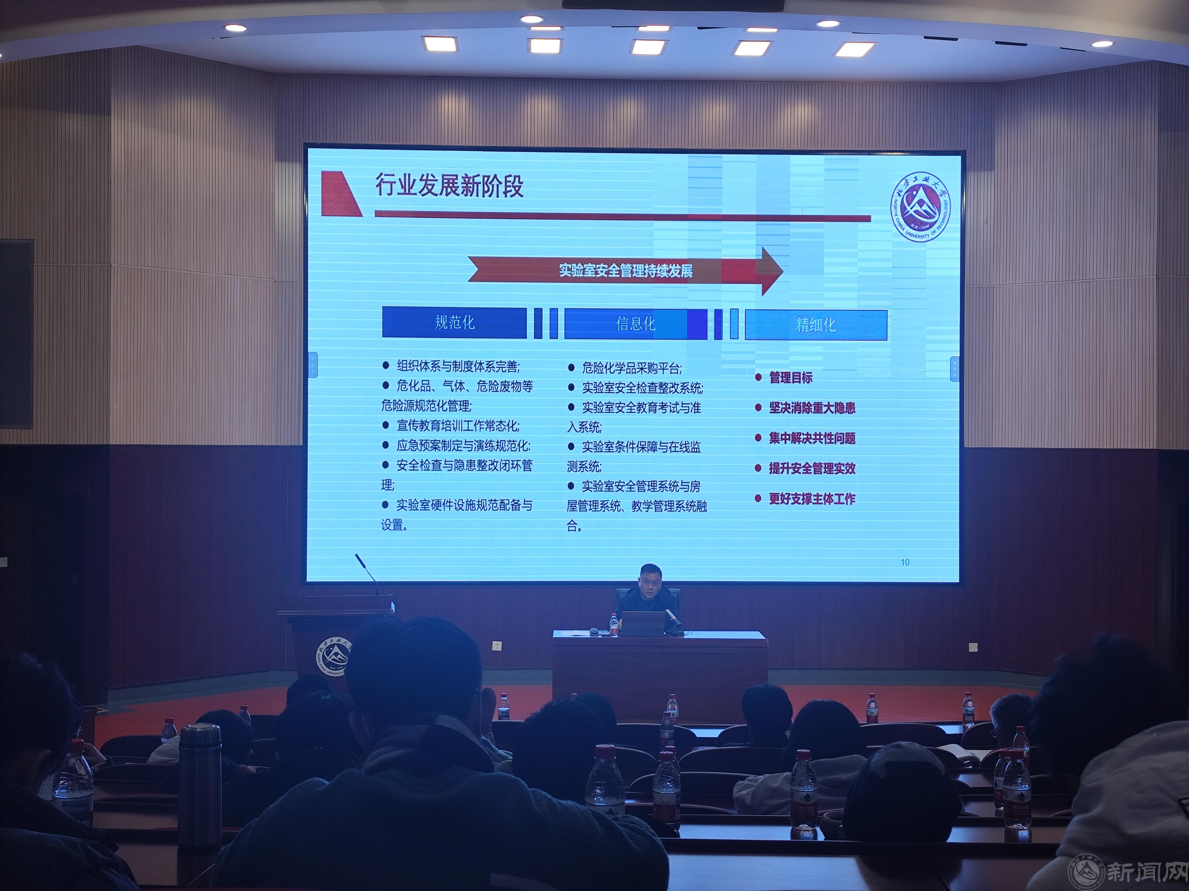 为深入贯彻学校党委关于安全工作的决策部署,进一步强化实验室安全管理,提升师生安全防范意识与应急处置能力,筑牢校园安全防线。12月5日,学校组织召开2025年下半年实验室安全培训会。学校安稳处负责人、各学院分管实验室安全工作副院长、实验中心主任、实验教师及学生代表共计200余人参加培训。培训会由资产与实验室安全管理处处长胡春江主持。