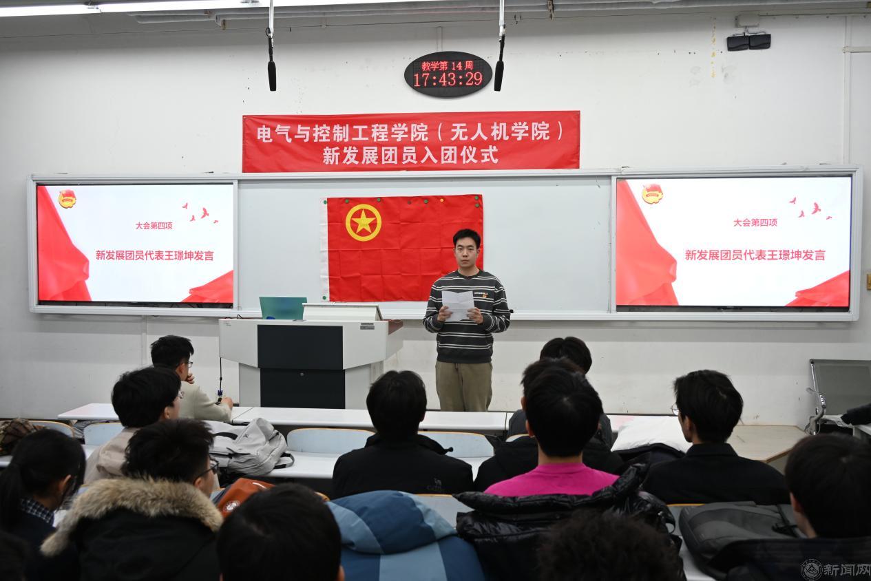 为促使新发展团员进一步明确新时代团员的责任义务,筑牢 “听党话、跟党走” 的思想根基,12月22日,电气与控制工程学院在瀚学楼0103举办2025年新发展团员入团仪式。学院团委副书记范玥、优秀团员代表杨成俊和55名新发展团员参加活动。
