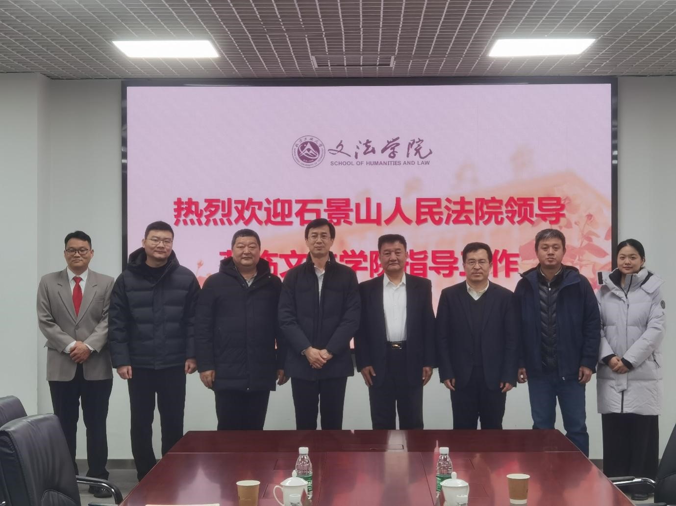 3月3日上午,石景山区人民法院党组成员、政治部主任梁汉带队来我校文法学院调研交流。文法学院院长刘泽军、党委书记袁凤识接待调研组一行。