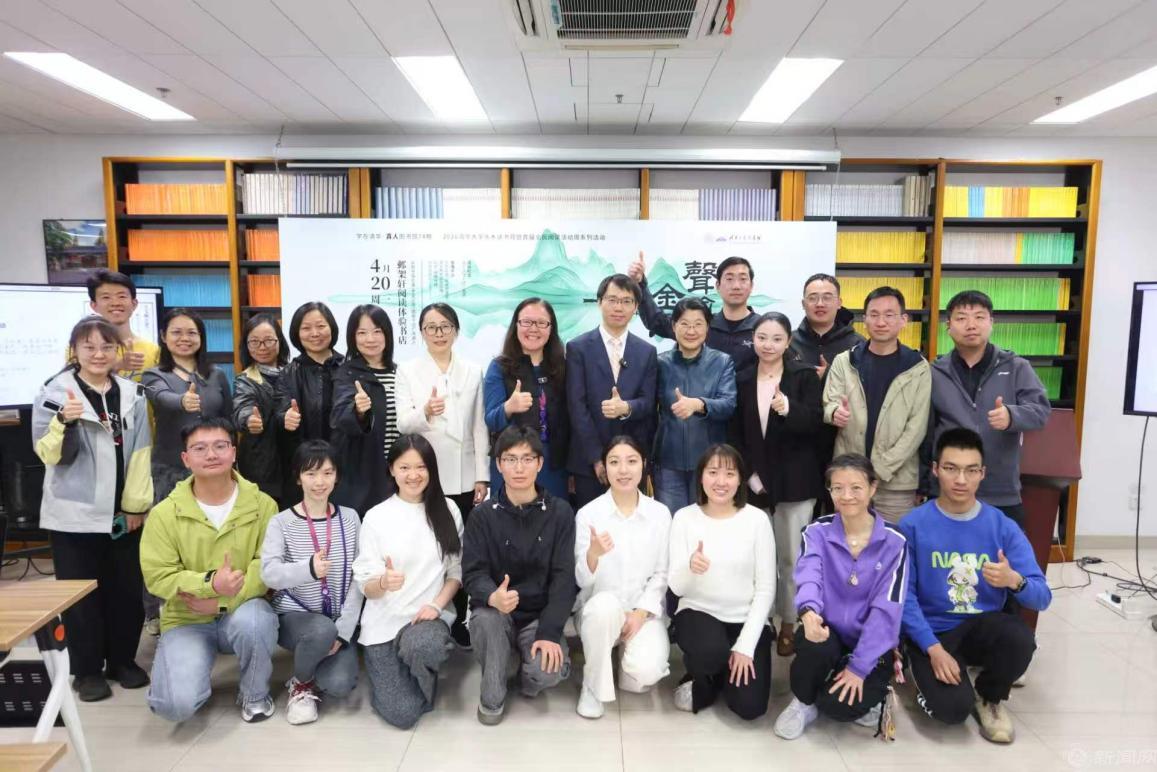 4 月 20 日,图书馆党支部组织师生代表前往清华大学开展实地研学活动。师生一行走进清华图书馆,沉浸式感受百年学府的书香底蕴与文化积淀,随后聆听“学在清华・真人图书馆”胡琦老师主讲的“声逾金石 ——《古文观止》与传统中国的知识世界”讲座,在墨香浸润与思想思辨中探寻古典文献魅力,践行全民阅读理念,感悟传统中国的知识智慧。