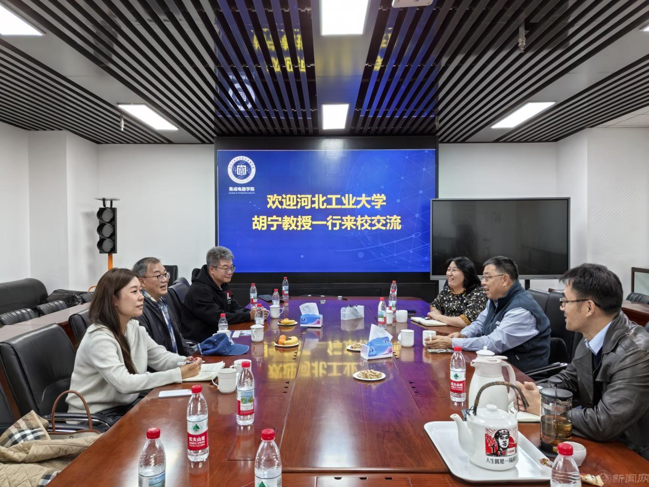 10月19日,国家海外高层次人才、国务院政府特殊津贴专家、河北工业大学副校长胡宁教授一行莅临我校集成电路学院进行学术交流,学院院长闫江教授、副院长张静教授及学科骨干教师明安杰教授热情接待。双方以“产学研协同赋能”为核心,围绕交叉学科在芯片行业的科研创新与产业应用展开探讨,开展了一场兼具学术深度与产业前瞻性的沟通交流。