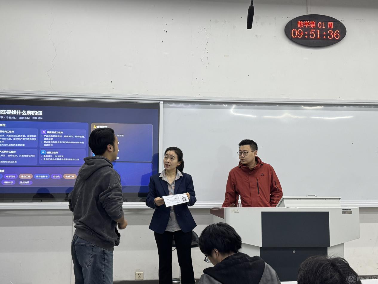 3月13日上午,集成电路学院在瀚学楼103举办“芯薪相映——就业星期五”系列活动第10期。本次活动特邀北京东宇宏达科技有限公司来校开展专场招聘,出席本次活动的有北京东宇宏达科技有限公司副总经理曹静、产品研发部负责人张啸辉、人力资源部负责人刘素玲,集成电路学院辅导员王鑫淼。活动吸引集成电路学院部分毕业生及其他兄弟学院毕业生共同参与。