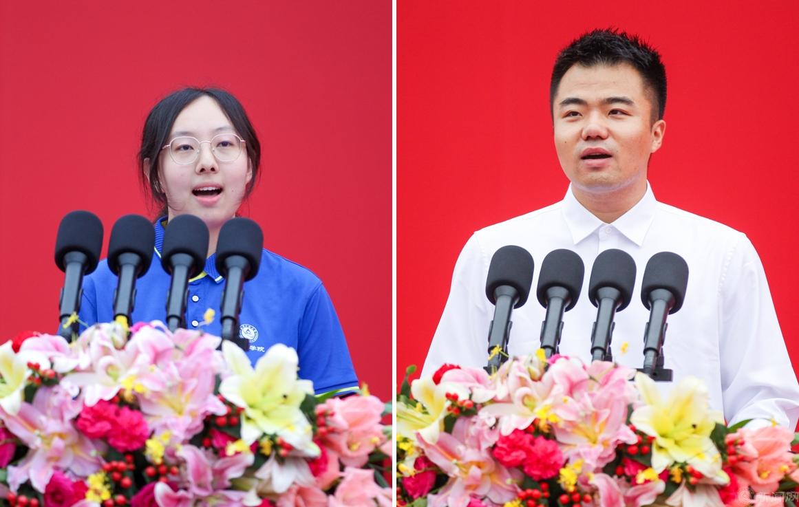 电气与控制工程学院教授胡长斌代表全体教师发言。他表示,大学的生活充满了挑战,但也充满了机遇;学会在矛盾与挣扎中砥砺奋进,才是一个人真正成长的标记。希望同学们坚守内心的热忱,朝着梦想步履坚定。机械83级校友、清华大学教授李德才表达了重返母校的感慨与感激,回顾了在母校学习生活的点点滴滴,希望同学们在奔赴梦想的道路上勇敢前行,在脚踏实地的实践中不断积累,在刻苦努力的奋斗中磨砺自己,在不懈坚持的旅途中绽放光彩。