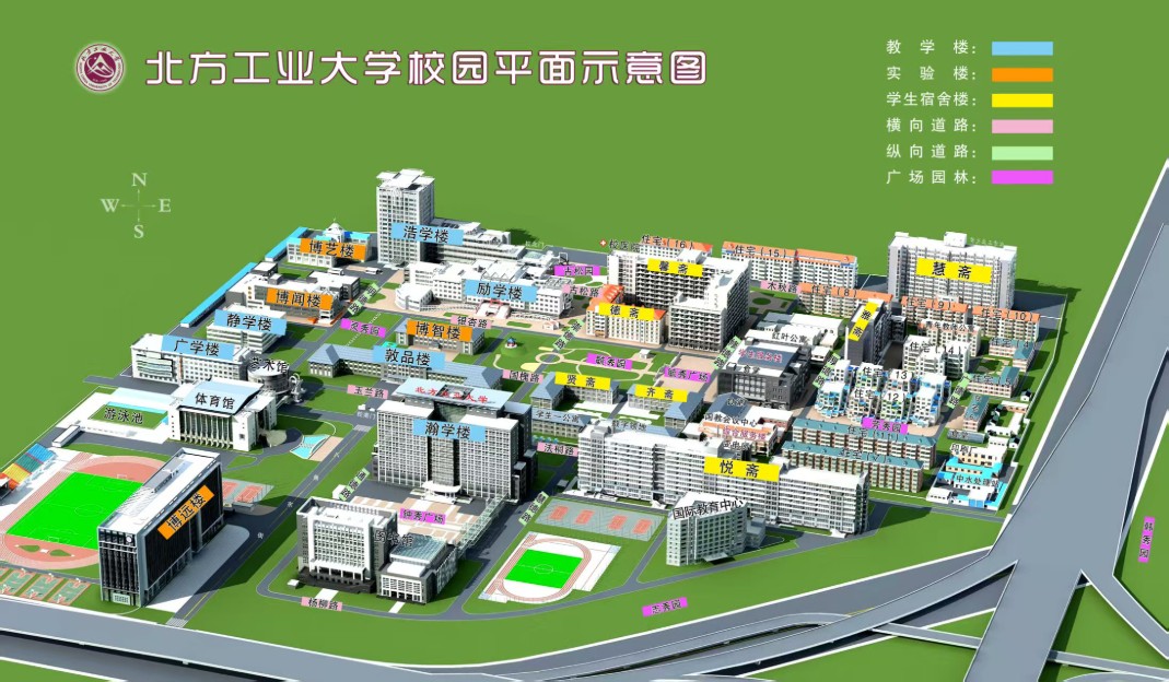 1、高德地图导航、百度地图导航:北方工业大学南门(石景山区晋元庄路与八角东街交叉口北20米)。